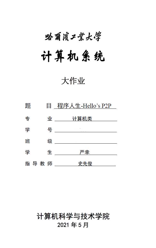 ICS大作业——程序人生 Hello‘s P2P