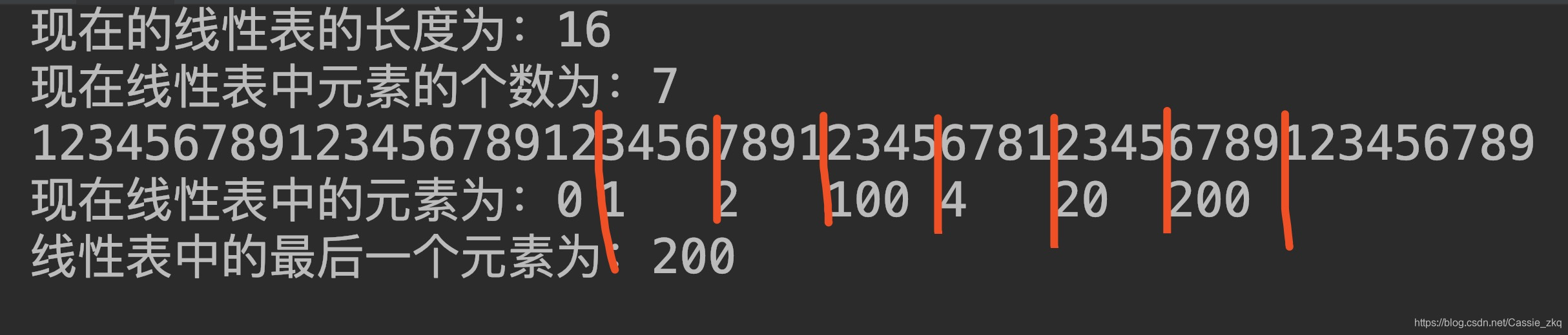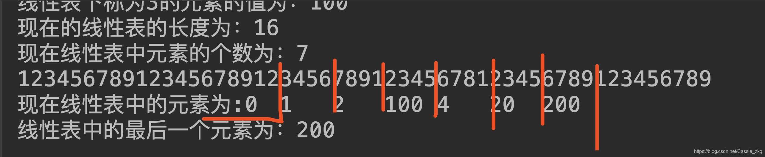 线性表中的最后一个元素为:200