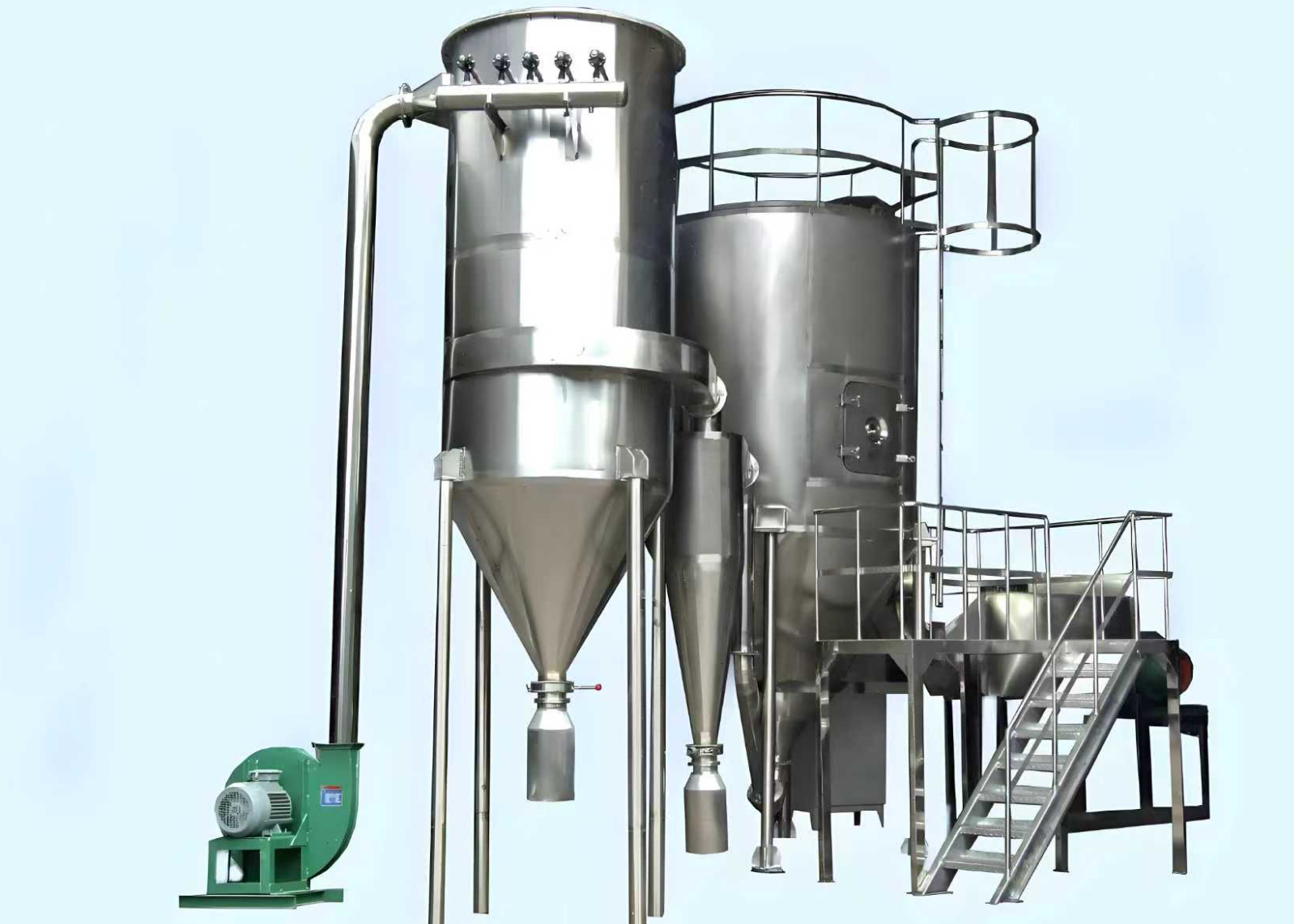 这种设备特别适用于热敏性物料,因为液滴与热风并流方向流动,虽然热风的温度较高,但物料在水分蒸发时不会过热。