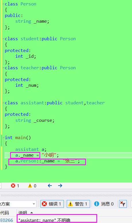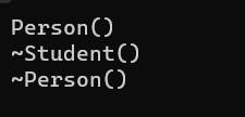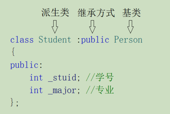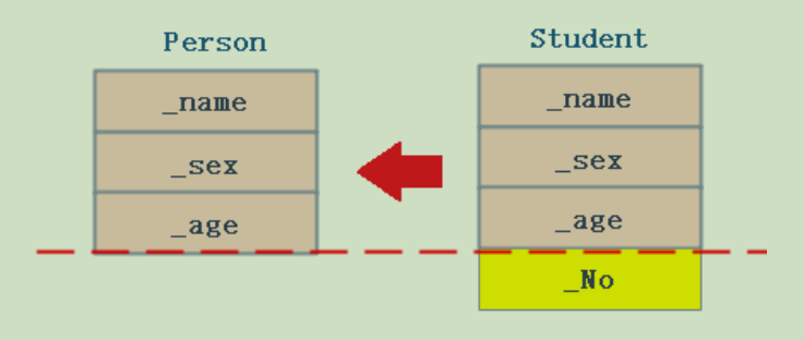 class Person { protected: char* _name; int _old; }; class student :public Person { private: char* _id; }; int main() { student s; }
