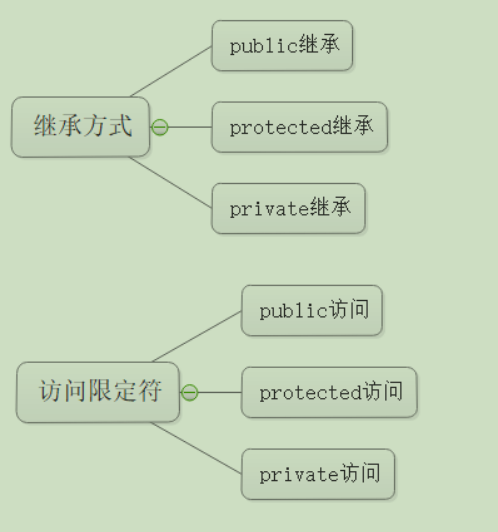 继承的方式:(当然继承的目的就是为了让子类可以拥有父类的成员,并访问,所以一般情况下,我们只会进行公有继承:public:)