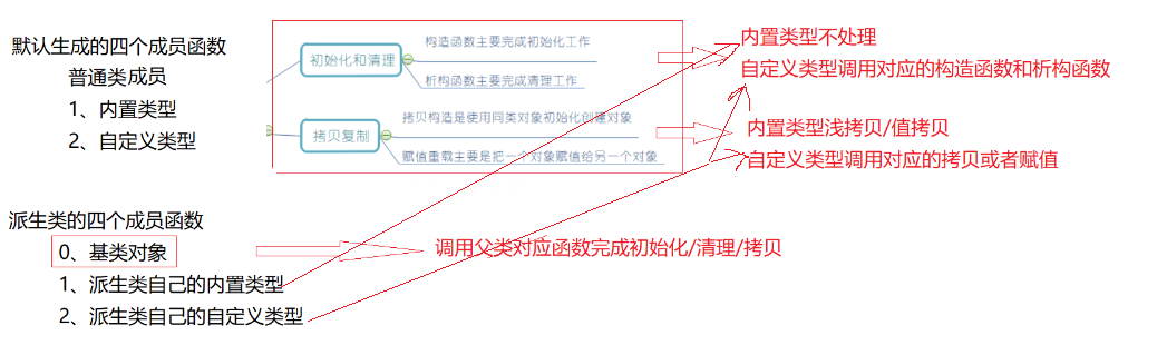 或者说:子类中的父类那部分成员由父类自己的构造或者拷贝构造实现初始化或者拷贝。