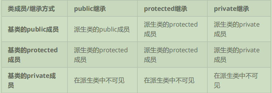 (不可见是指基类的私有成员还是被继承到了派生类对象中,但是语法上限制派生类对象不管在类里面还是类外面都不能去访问它。)