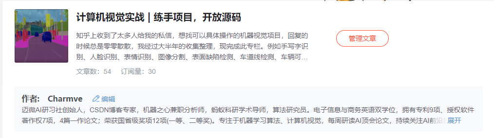链接 https://blog.csdn.net/charmve/category_10595130.html