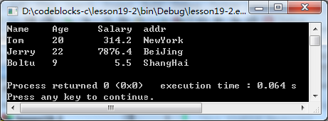 printf("Jerry\t%d\t%6.1f\t%s\n",22,7876.4,"BeiJing");