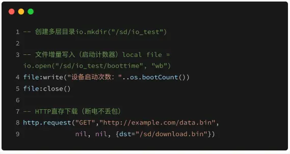 例如:Air8000工业引擎支持TF卡读写,可用于MIC或者摄像头和音视频数据采集写入,也可从中读取数据用于显示屏和音频输出以及数传等功能。