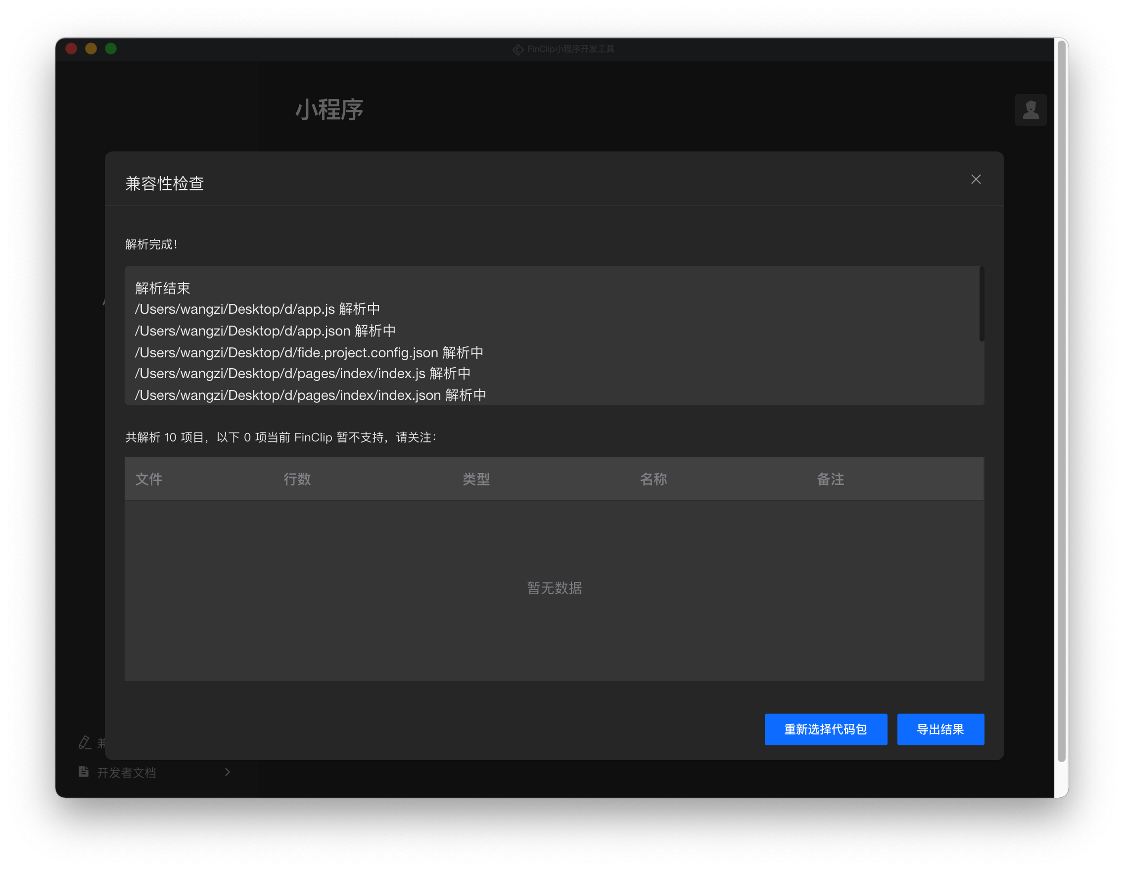 FinClip 小程序支持您将基于微信小程序设计的代码进行迁移,现在可以通过点击 FIDE 中的「兼容性检查」按钮入口,对小程序代码包进行自动检查。您也可以点击下方的「小程序迁移自查」文档,了解第三方小程序迁移至 FinClip 小程序的相关差异。