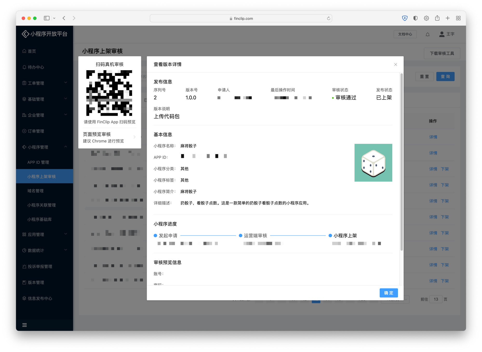 FinClip 小程序支持直接在桌面端浏览器内预览了,审核小程序时可直接在网页端进行对应操作。当前该功能仅向运营端开放,您可通过部署社区版进行体验。