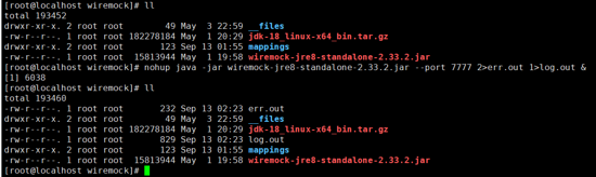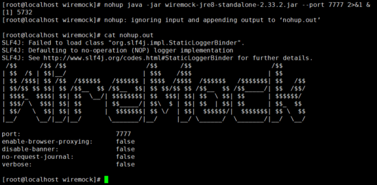 nohup java -jar wiremock-jre8-standalone-2.33.2.jar --port 7777 2>&1 &
