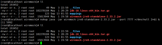 nohup java -jar wiremock-jre8-standalone-2.33.2.jar --port 7777 &>log &