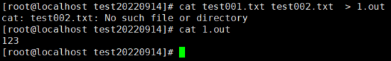 cat test001.txt test002.txt 2> 1.out
