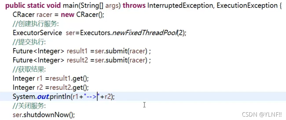 3.提交执行:Future<Boolean> result = ser.submit(cd1);