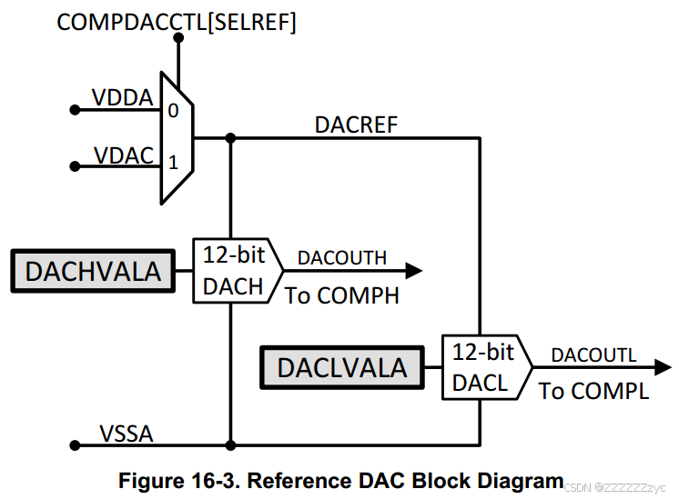 Cmpss2Regs.COMPDACCTL.bit.SELREF = 0; //VDDA作为DAC的参考电压:2.5