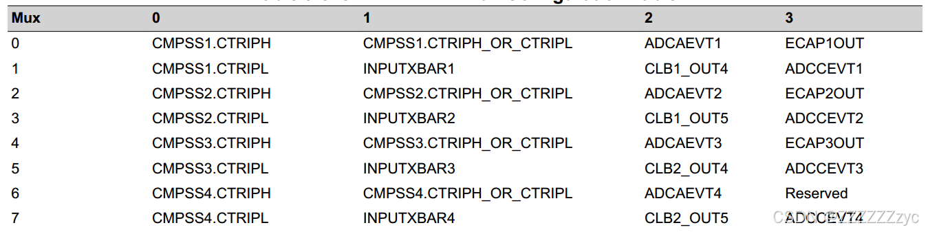 0异步比较器输出驱动CTRIPH;1同步比较器输出驱动CTRIPH;2数字滤波器驱动CTRIPH;3锁存的数字滤波器驱动CTRIPH。