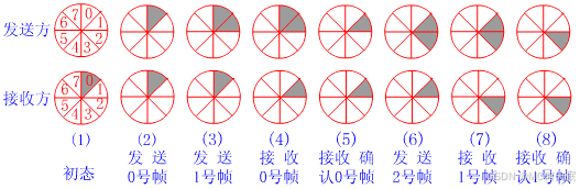 发送端每发送一个帧,序号取上界值,上界加1;每接收到一个正确响应帧,下界加1。