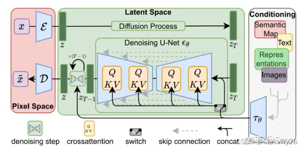 - 执行Denoising Unet,利用cross attention融合多模态信息