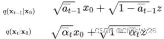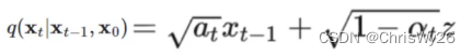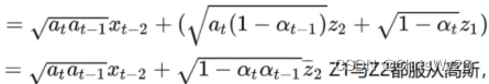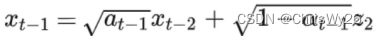 Xt时刻的分布等于t-1时刻的分布+随机高斯分布的噪音,其中α是噪音的衰减值