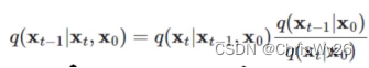 根据上面正向过程的公式,左式可求已知Xt-1时Xt的状态: