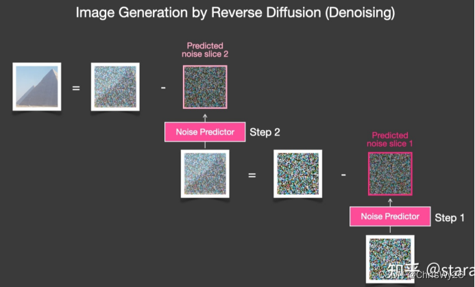 - 预测每一步需要减去的噪音,直到step执行完毕