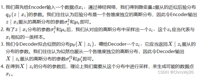 (3)通过极大似然估计,最大化p’(X)的概率,但由于xi的维度很大,zi的维度也很大,需要准确找到与xi分布相关的zi,需要大量的采样,因此需要在encoder中引入后验分布p’(z|xi),让xi与zi关联起来