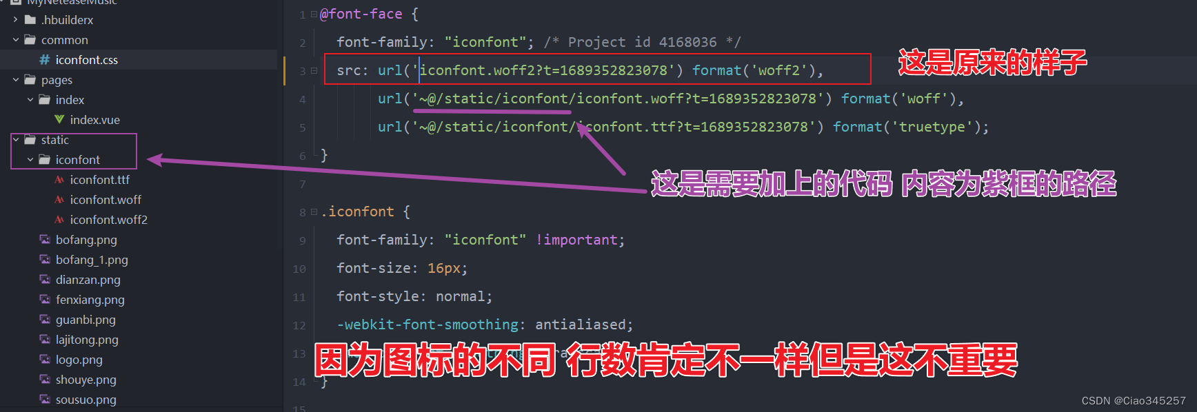 随后我们打开iconfont.css文件 修改里面的代码