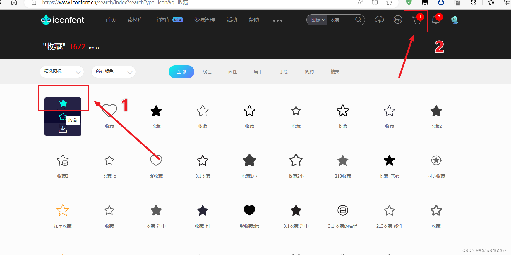 首先我们需要打开iconfont网站里面去找我们需要的图标