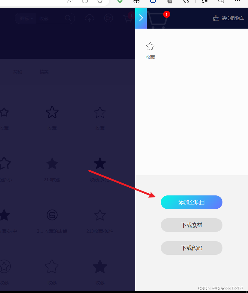 然后添加到项目 因为我们做项目一般不会只用到一个图标 所以添加一个项目 方便管理和一次性下载 没有项目就直接新建一个就好