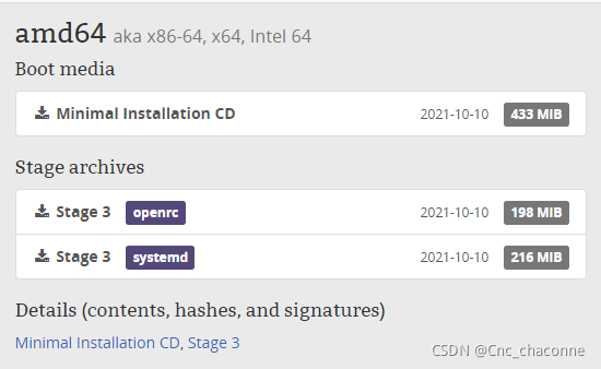 在Downloads – Gentoo Linux中下载网络安装镜像