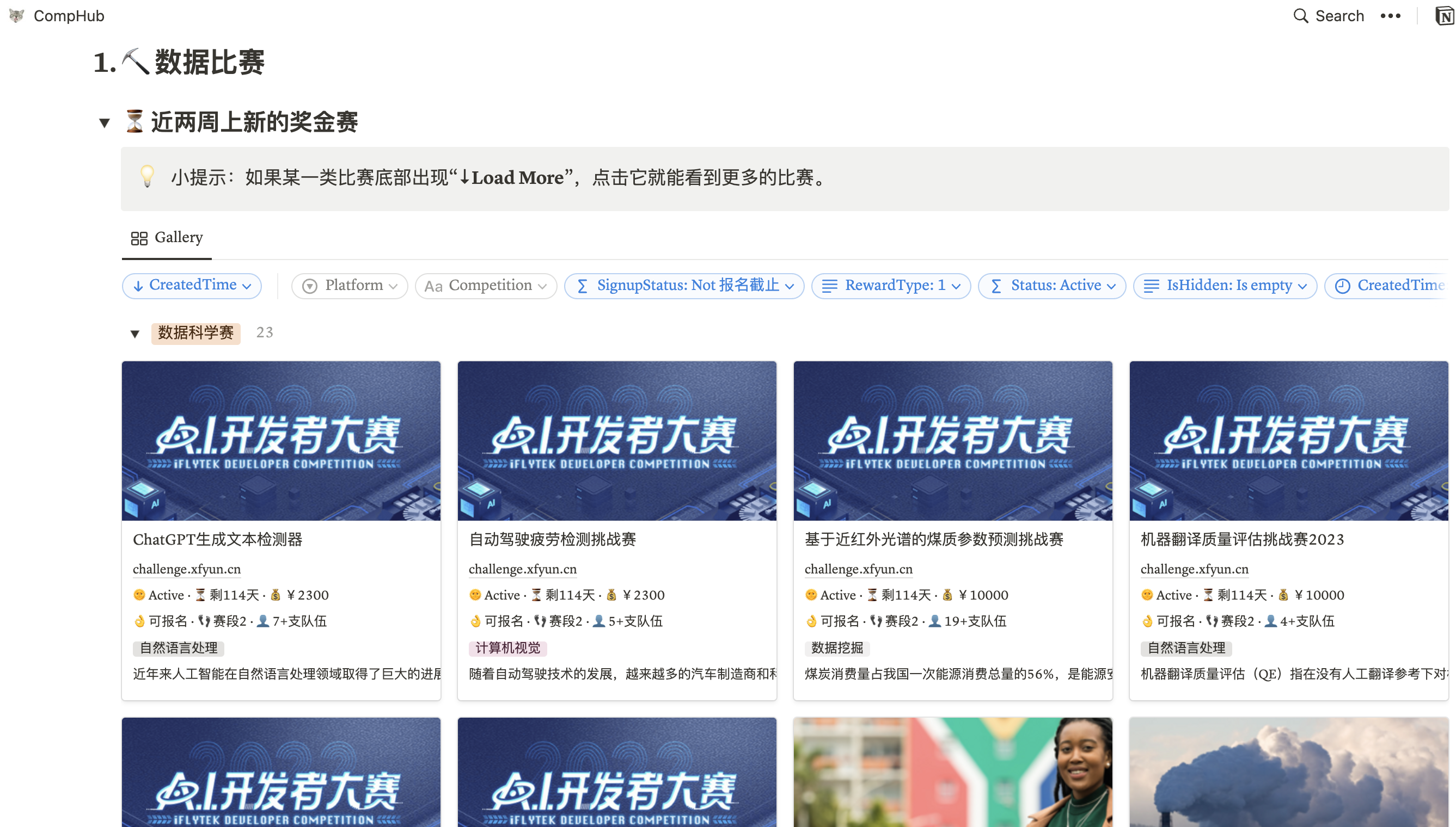 CompHub 主页增加了“近两周上新的奖金赛”,更加方便查找最新比赛,欢迎访问和反馈!