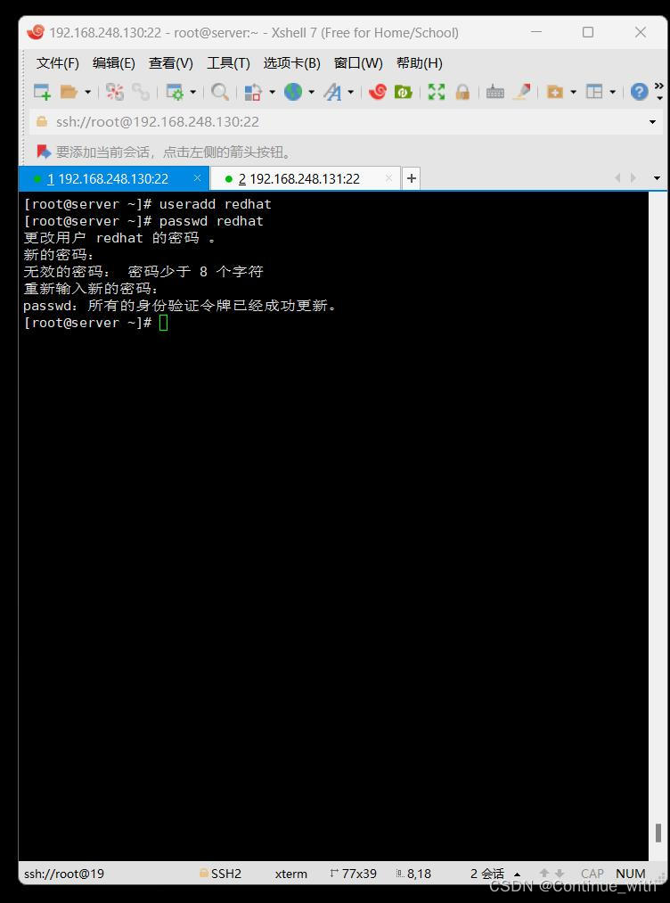 首先定位服务端server端,创建redhat账户