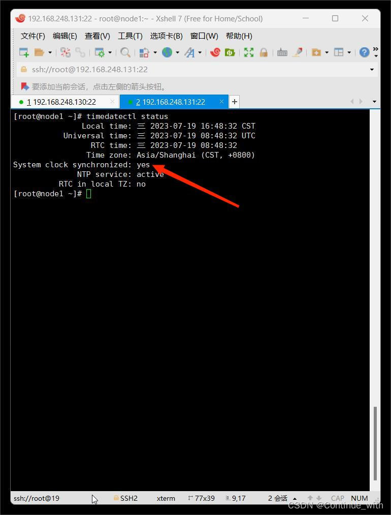 然后查看时间的状态,看到是yes就是已经同步了