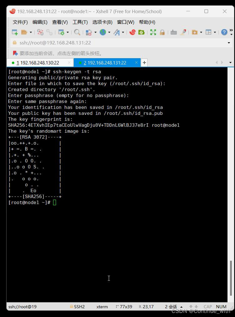 [root@node1 ~]# ssh-keygen -t rsa (确认命令后一直确认即可)