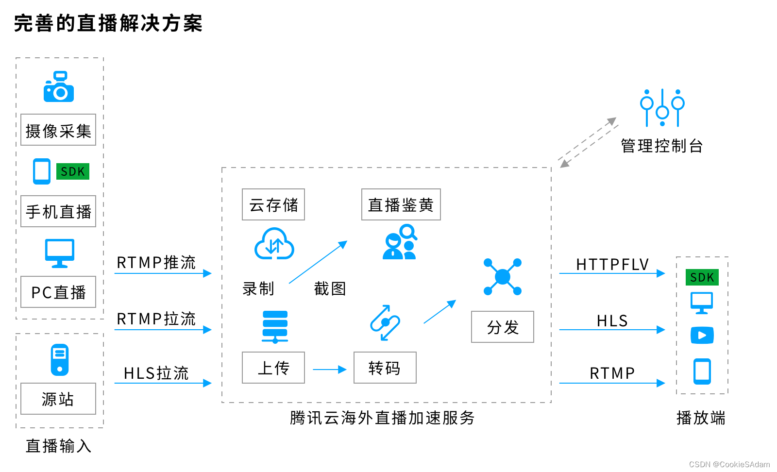直播推拉流技术是一种通过网络实时传输视频内容的先进技术。推流是指将视频数据从源端发送至服务器端,而拉流则是从服务器端获取视频数据并在终端设备上播放。该技术的主要功能和优势如下: