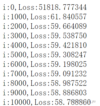 print("i:%i,Loss:%f" % (i, mse[i]))