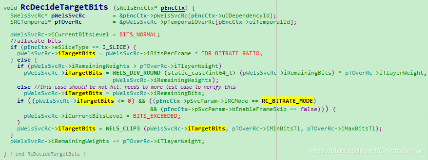 RcDecideTargetBits (sWelsEncCtx* pEncCtx)函数