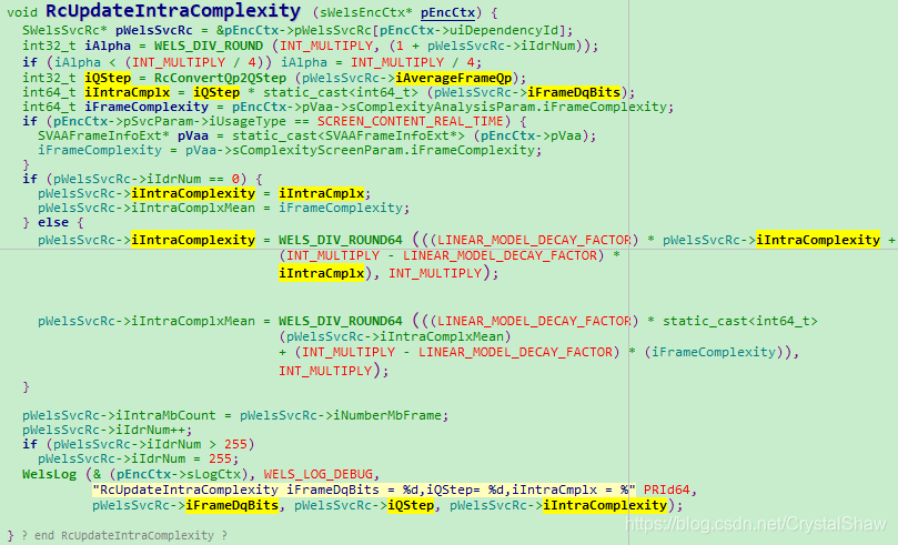 RcUpdateIntraComplexity (sWelsEncCtx* pEncCtx)