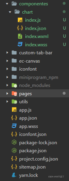 在项目中创建componentes/chart目录,并初始化文件index.js、index.json、index.wxml和index.wxss。