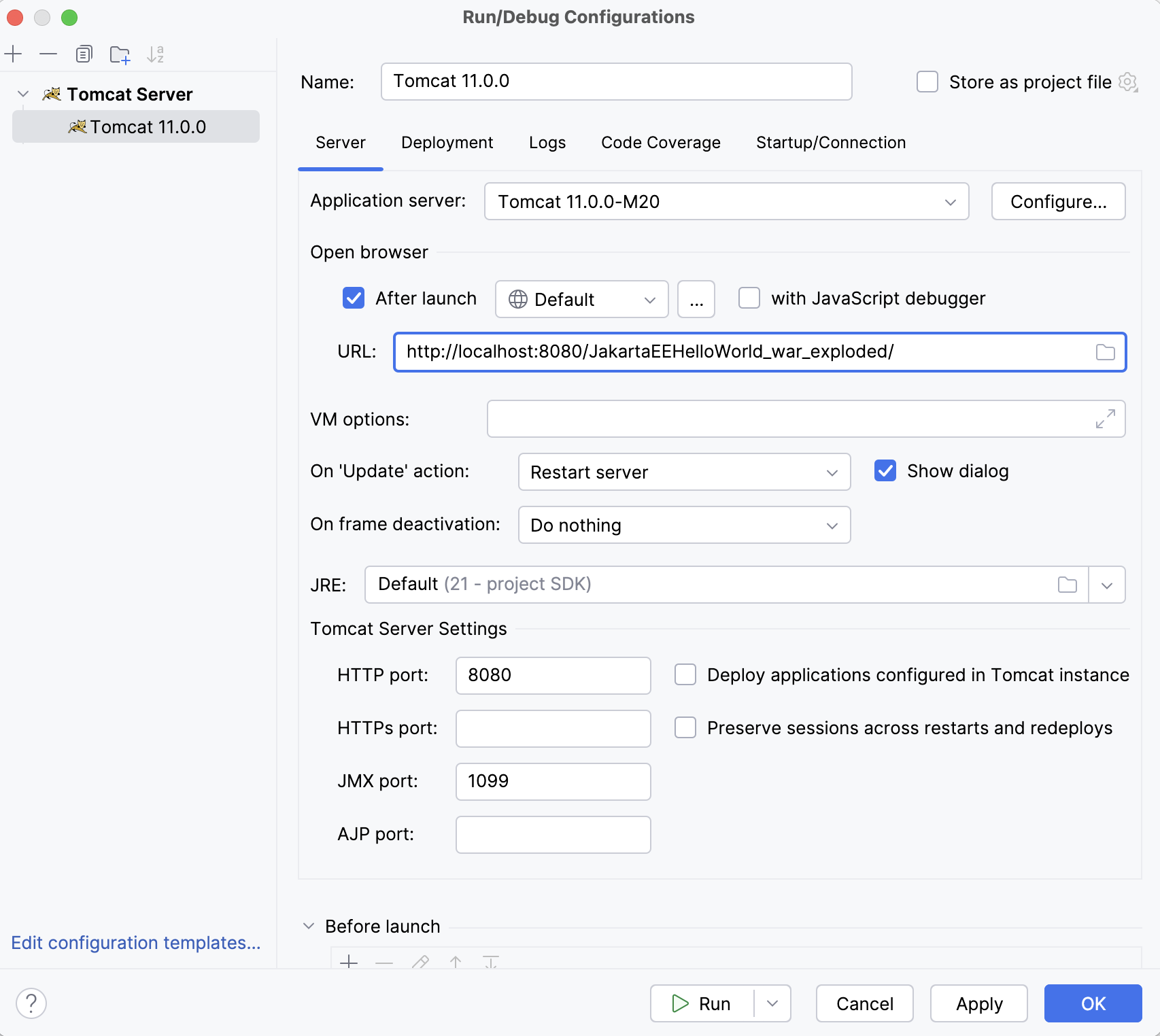 To run the configuration, press ⌃Ctrl⌥Option0R and select the created application server configuration.