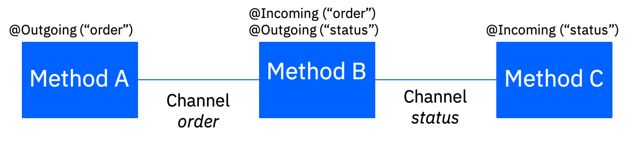 该规范通过在应用程序Bean上使用注解方法(@Incoming和@Outgoing),并通过命名通道(指定消息来源或目标的字符串/名称)将这些方法连接起来实现通信。
