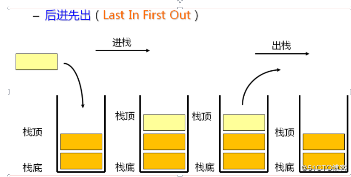 出栈:栈的删除操作叫做出栈。出数据也在栈顶。