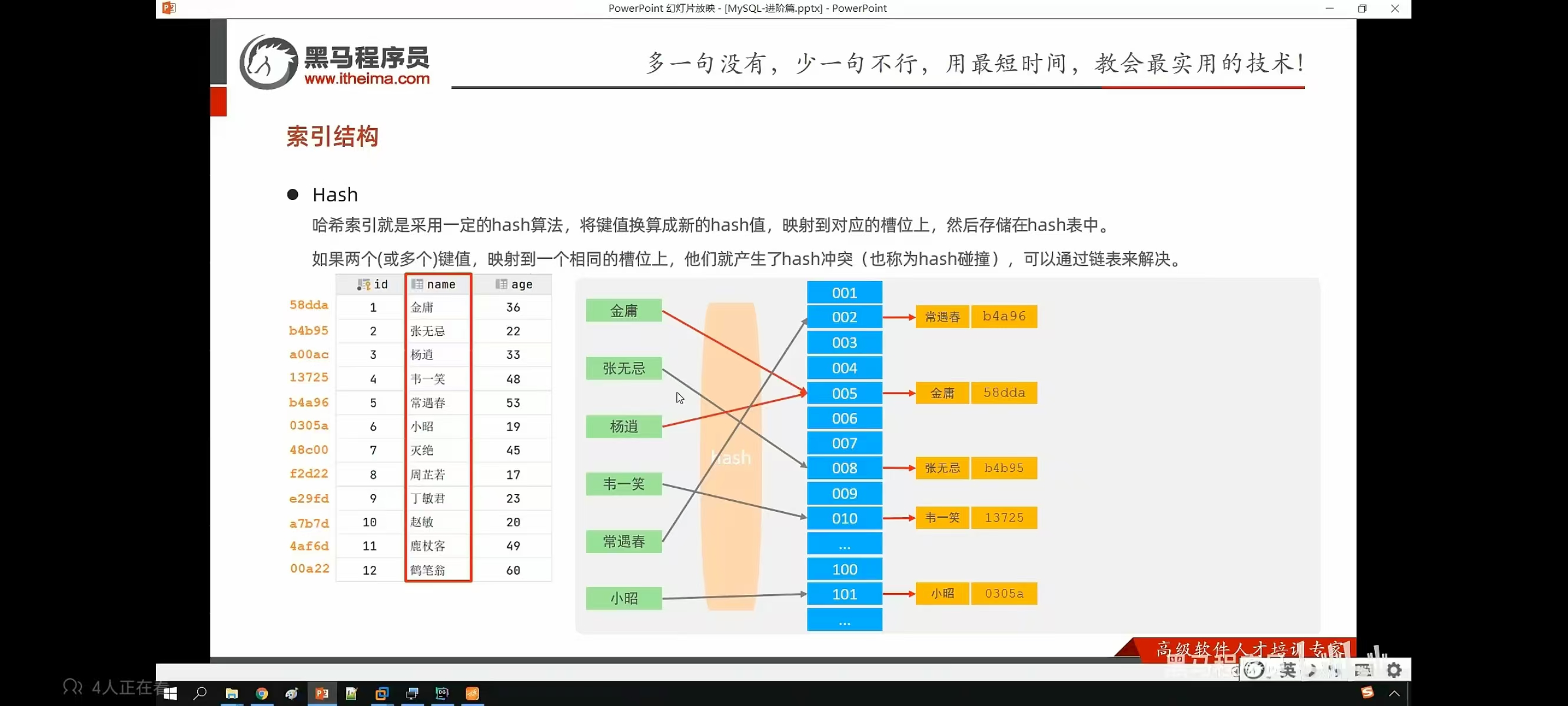 哈希索引就是采用一定的hash算法,将键值换算成新的hash值,映射到对应的槽位上,然后存储在hash表中。