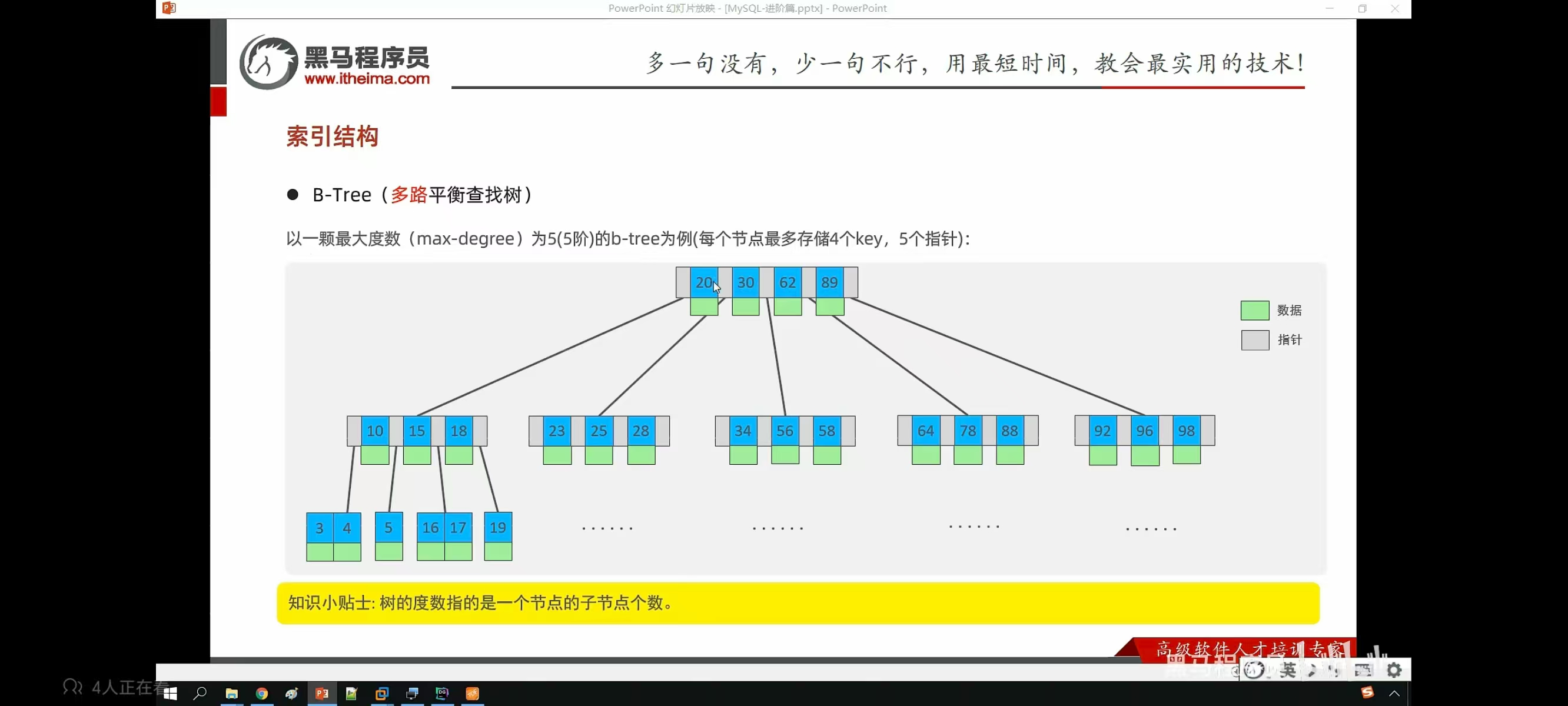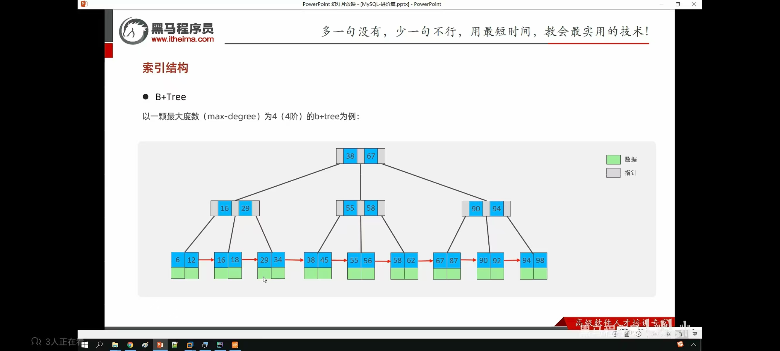 所有的数据都会出现在叶子节点,上面的非叶子节点起到索引作用