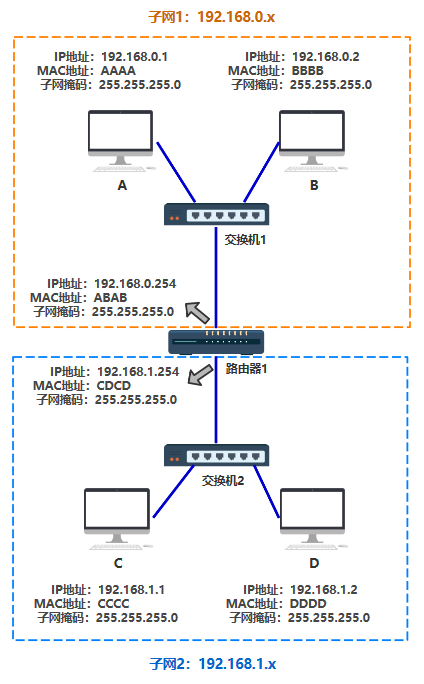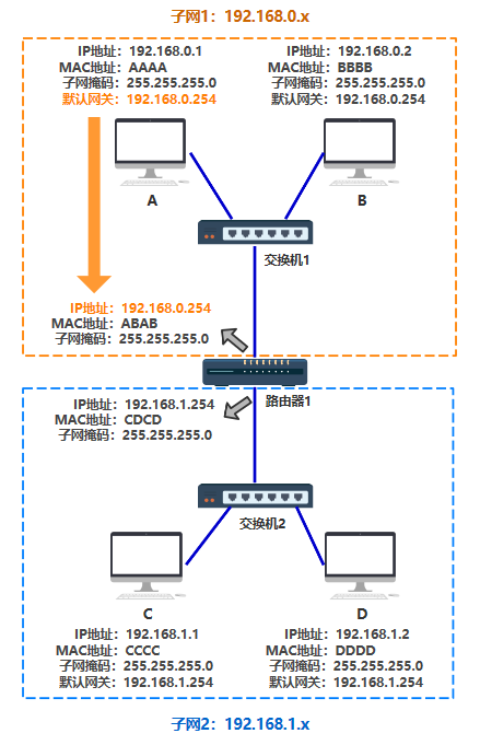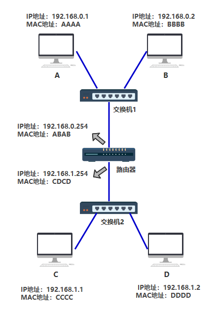 首先,你要给所有的连接到交换机的设备,都起个名字。原来你们叫 ABCD,但现在需要一个更专业的,全局唯一的名字作为标识,你把这个更高端的名字称为 MAC 地址。