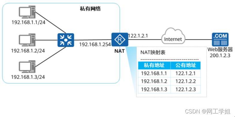 而内网IP与公网IP之间的转换也大有学问,这个转换技术就叫 NAT(网络地址转换)技术。