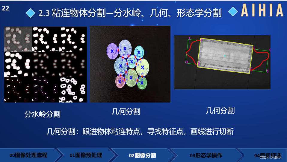1) 图像分割有传统算法的分割、也有深度学习的分割、这里主要以传统算法的分割进行介绍。分割个人觉得可分为两大类别,一类是目标与背景的分割,另一类则是根据前者分割图像,对粘连的物体进行分割。