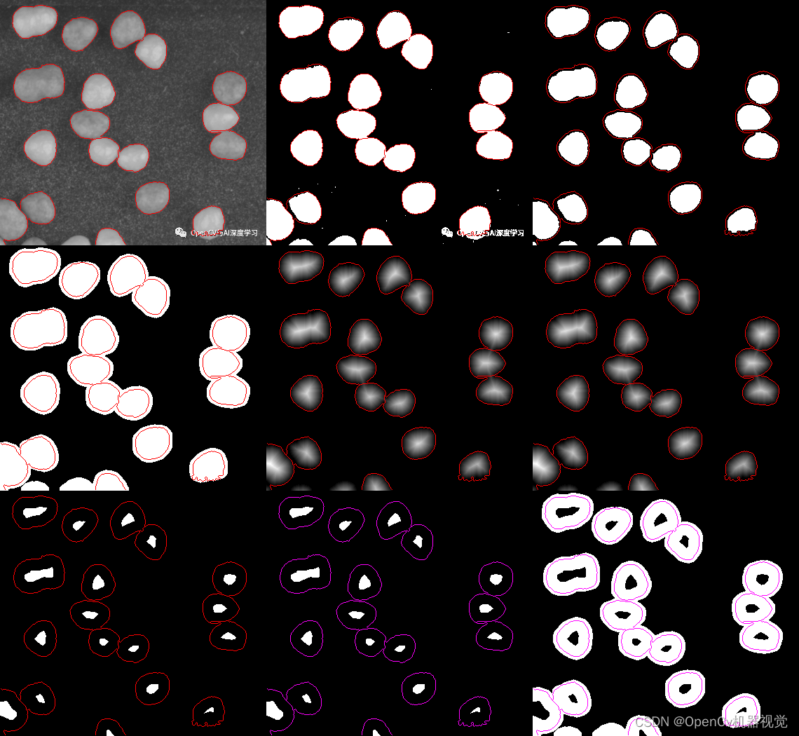 unknown = cv.subtract(dilate,surface_fg) # 用膨胀之后的图片于距离变换后二值化图片进行减操作