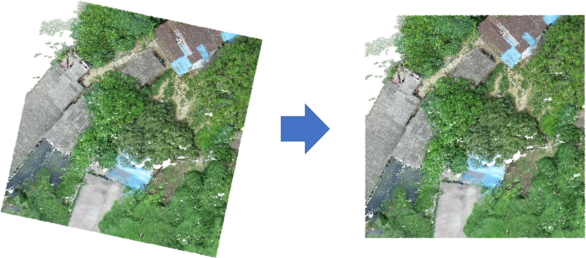 两个几何形状相同的点云文件,其一有颜色信息,其二有标签信息,桌面点云处理软件中通常不能将其融合。一个存在的困难是两个文件中,尽管形状相同,但各点的顺序可能存在差异。因此,组合乱序点云中的特征不能直接将数据融合,还需先将对应点进行匹配排序。