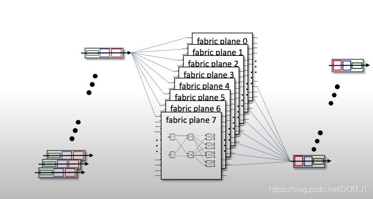Scalable -- Instead of using just 1 multistage switch, create a network of switching planes, so more parallelism, higher switching capcity
