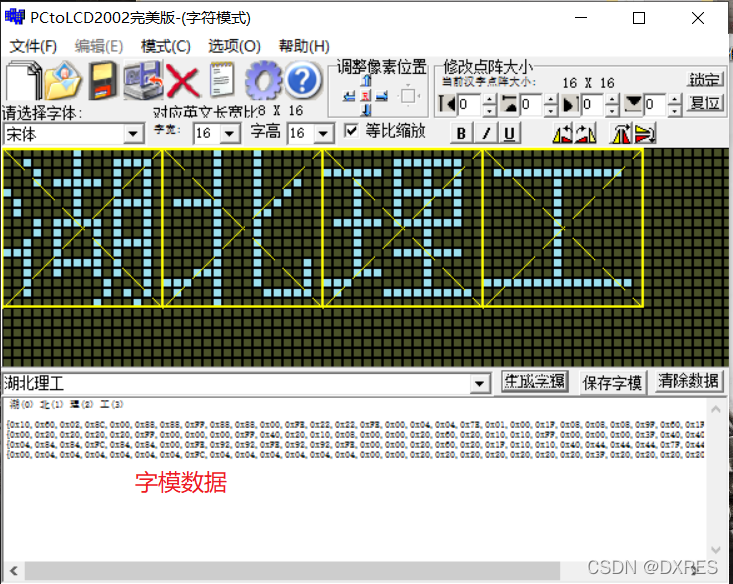 显示函数中四个参数,前两个表示显示位置即行列,第三个表示汉字的字模位置,最后一个表示大小。显示汉字我们需要对汉字取模,文件包中也有取模软件,不会的可以上网搜下比较简单。
