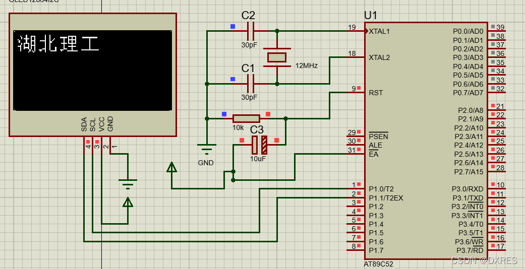 这样便可在显示屏的第一行显示汉字“湖北理工”,显示图片同样替换bmp.h中的字模数据。